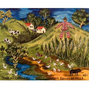 óleo s/ tela, ass., dat. 1980 inf. dir., tit. inf. esq., ass., dat. 1980, tit., sit. Brasil e com a dedicatória “para a querida amiga D. Ruth de Almeida Prado, ofereço com um abraço, Rosina Becker do Valle, 3/6/1980”no verso. 24 x 19 cm