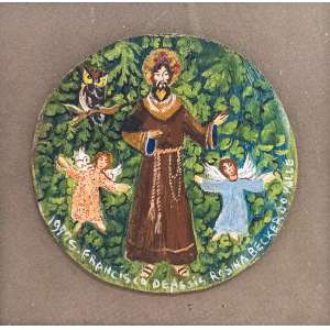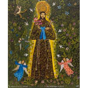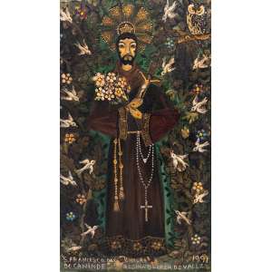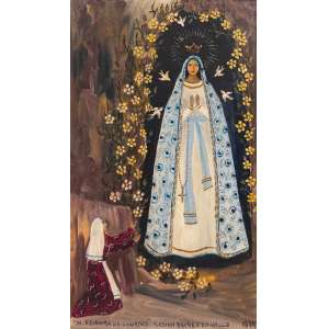 óleo s/ tela, ass., dat. 1991 inf. dir., tit. inf. esq., ass., dat. 1991, tit., sit. Brasil e com a inscrição “Ceará - onde se realiza a Romaria de S. Francisco das Chagas do Canindé. ‘ Canindé - cidade do Ceará’” no verso. 41 x 24 cm