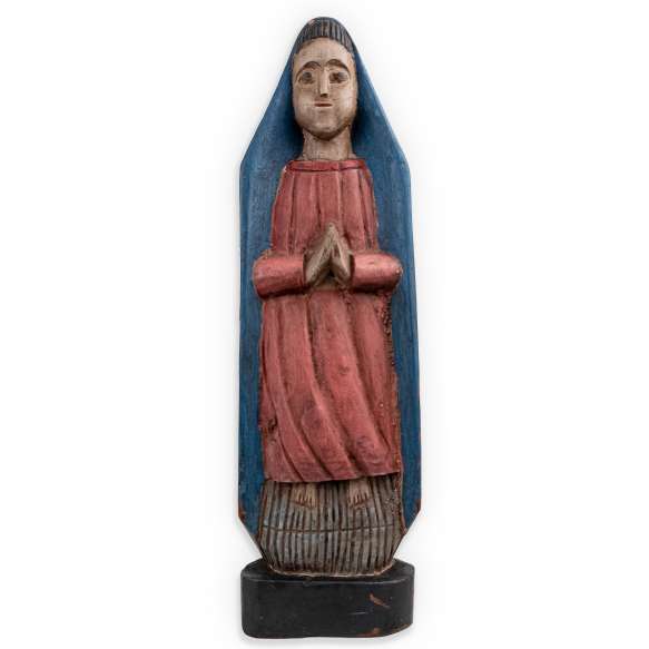 escultura em madeira entalhada e pintada, ass. 33 x 9 x 5 cm