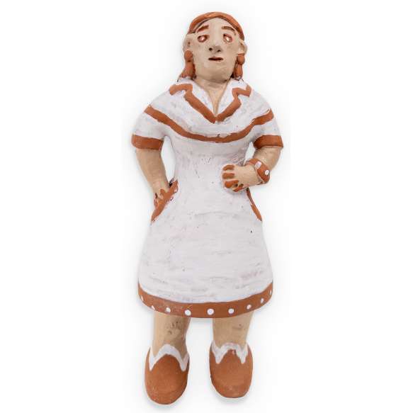 escultura em cerâmica policromada, ass. na parte traseira (perna quebrada). 23 x 8,5 x 8,5 cm