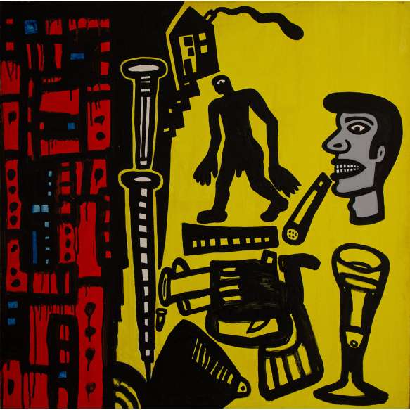 acrílica s/ tela, ass. e dat. 1991 no verso com etiqueta da Galeria Anna Maria Niemeyer no chassi. 100 x 100 cm