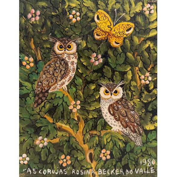 óleo s/ tela, ass., dat. 1980 inf. dir., tit. inf. esq., ass., dat. 1980, tit., sit. Brasil e com a dedicatória “para a querida amiga D. Ruth de Almeida Prado, ofereço com um abraço, Rosina Becker do Valle, 3/6/1980”no verso. 24 x 19 cm