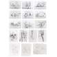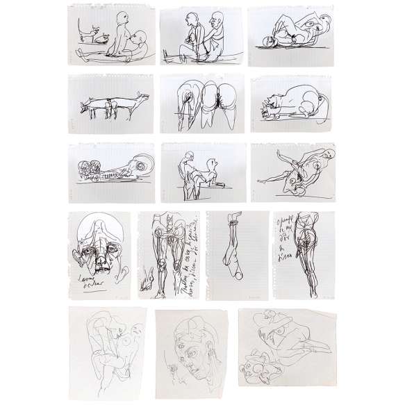 conjunto de 13 desenhos em caneta hidrográfica s/ papel pautado, todos dat. 07/12/1985 inf. dir. e mais 3 desenhos em grafite s/ papel, s/ ass. desenhos em caneta hidrográfica: 21 x 14 cm (cada) desenhos em grafite: 13,5 x 10,5 cm (cada)