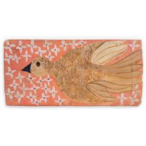 escultura em barro cozido e policromado, ass. com as iniciais na lateral. 14 x 16 x 7 cm