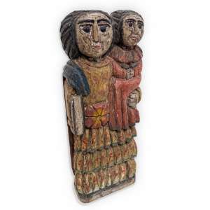escultura em madeira entalhada e policromada, ass. no verso da base (base solta). 34 x 11 x 10,5 cm