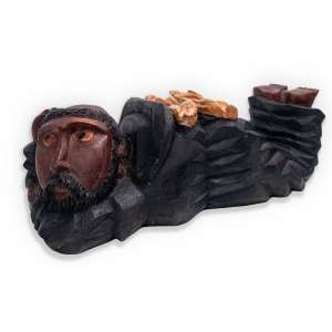 escultura em madeira pintada, ass. 12,5 x 33 x 12 cm