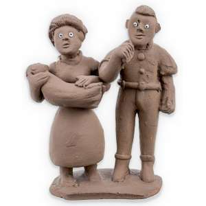 escultura em barro cozido policromado, ass., dat. 1983 e sit. Rio no verso da base. 14,5 x 10 x 6 cm