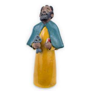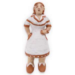 escultura em barro cozido e policromado, ass. na parte interna. 17 x 6 x 9 cm