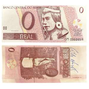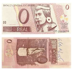 carimbo s/ cédula de dois reais - (c. 2013) - reedição do “Projeto Cédula” (1970-1976) - 6,5 x 12 cm