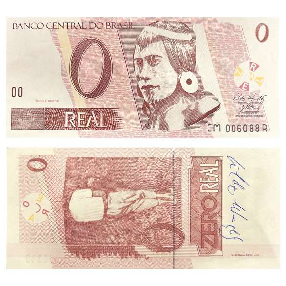 iimpressão off-set s/ papel moeda, ass. na chapa inf. dir.,sendo um exemplar n. CM006088R e outro n. CM 006149R inf. dir. ass. a caneta pelo artista no verso