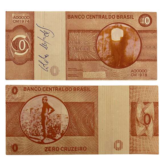 impressão off-set s/ papel, ass., dat. 1974 sup. esq. e dat. 1978 inf. dir. - Um exemplar reproduzido na p. 45 do livro Cildo Meireles, de Paulo Herkenhoff, Geraldo Mosquera e Dan Cameron (São Paulo: Cosac Naify, 1999); e na p. 79 do catálogo da exposição “Cildo Meireles”, realizada entre 2008 e 2010 na Tate Modern (Londres), Museu d’Art Contemporani de Barcelona (Espanha), The Museum of Fine Arts (Houston, Texas – EUA), Los Angeles County Museum of Art (Califórnia – EUA) e Art Gallery of Ontario (Canadá) - 7,5 x 15,5 cm