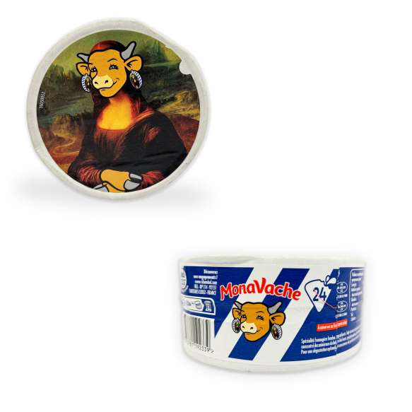 design gráfico para edição especial “La Vache qui Rit”, 2024 - realizado na ocasião da 11ª edição da Boîte Collector, projeto que convida artistas contemporâneos a reinterpretar a embalagem da marca de queijos francesa - 5 x ø11 cm
