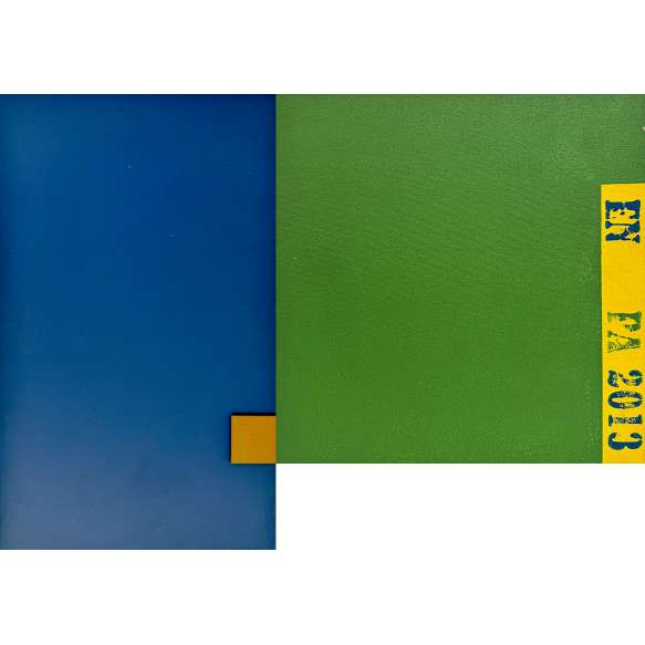 técnica mista s/ tela e mdf, ass. com as iniciais, dat. 2013 e com a indicação PA lat. dir. - 50 x 71 x 0,4 cm