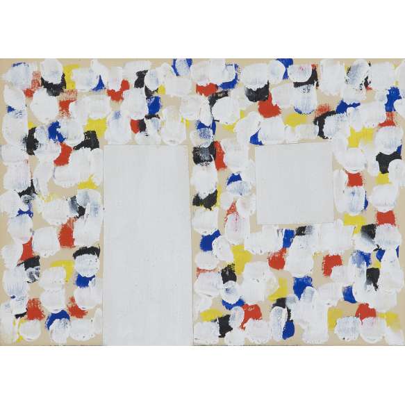 acrílica e colagem s/ papel artesanal, ass., dat. 1985 e sit. Paris no verso - com certificado de autentidicade do Projeto Concreto - 21 x 29,5 cm