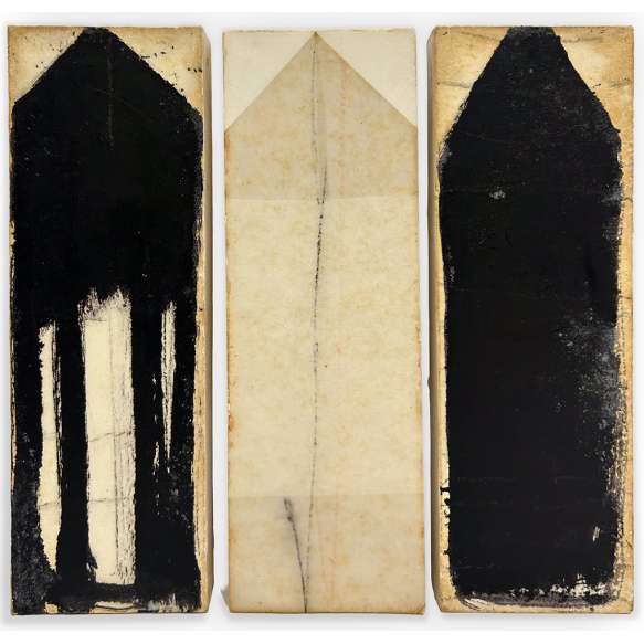 óleo e cera s/ tela, todos ass. e dat. 2006 no verso e com carimbo da artista na parte lateral - 30 x 10 cm (cada)