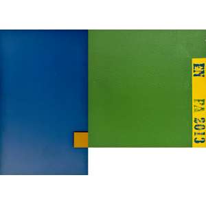 técnica mista s/ tela e mdf, ass. com as iniciais, dat. 2013 e com a indicação PA lat. dir. - 50 x 71 x 0,4 cm