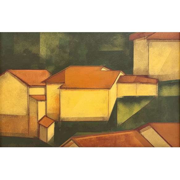 vinil encerado s/ tela, ass., dat. 1981 inf. esq., ass., dat. 02/04/1981, tit., sit. Ouro Preto e com numeração do artista 28/OP/81 no verso