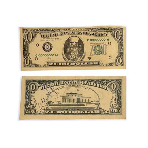 impressão off-set s/ papel, ass. “Lu Menezes” na chapa inf. esq. e ass. a caneta pelo artista no verso - Um exemplar reproduzido na p. 45 do livro Cildo Meireles, de Paulo Herkenhoff, Geraldo Mosquera e Dan Cameron (São Paulo: Cosac Naify, 1999); e na p. 81 do catálogo da exposição “Cildo Meireles”, realizada entre 2008 e 2010 na Tate Modern (Londres), Museu d’Art Contemporani de Barcelona (Espanha), The Museum of Fine Arts (Houston, Texas – EUA), Los Angeles County Museum of Art (Califórnia – EUA) e Art Gallery of Ontario (Canadá)