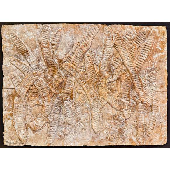 folhas de árvore moldadas em gesso, ass. inf. esq.