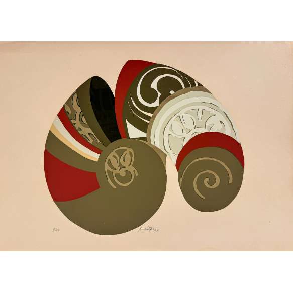 gravura em metal (água-forte e relevo) em cores impressa s/ papel, ass., dat. 1967 centro inf. e n. 9/200 inf. esq.