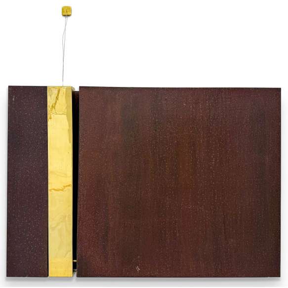objeto escultórico em metal com bloco dourado, ass., dat. 2011 e n. 1/3 no verso