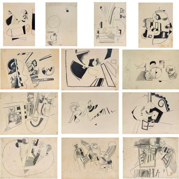 grafite s/ papel, todos ass. e dat. 1966 (11 desenhos) ou 1967 (2 desenhos) - Procedência: Acervo Petite Galerie